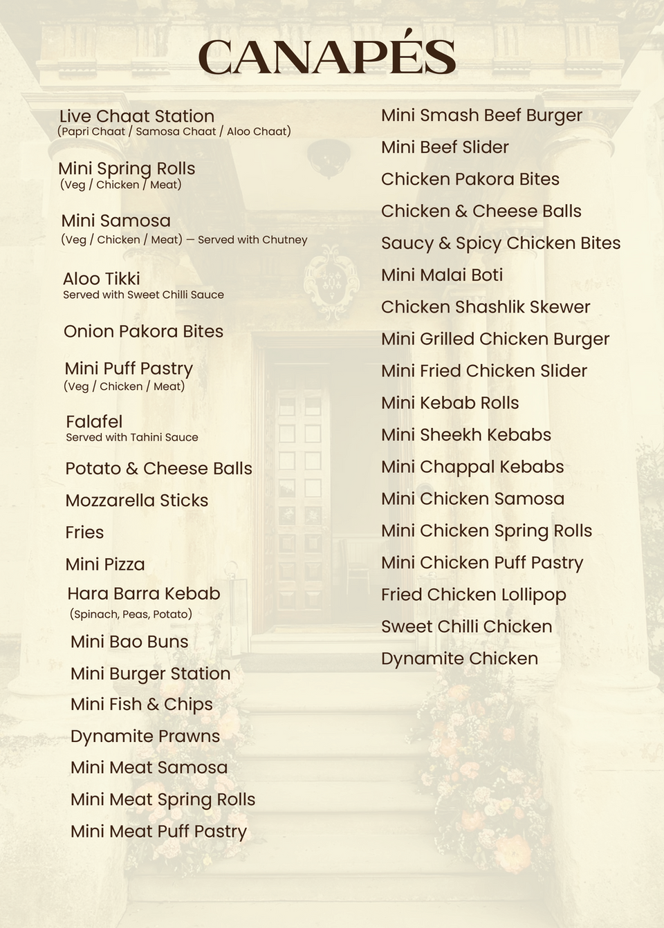 At The Monal, we specialise in crafting bespoke experiences tailored to your unique style and preferences. Our food menu is designed with luxury in mind, offering options that rival the standards of a 5-star restaurant. Since food is at the heart of any event, we ensure every dish leaves your guests satisfied. Choose from a variety of dining options, including plated dinners, buffets, and interactive food stations, all designed to enhance your event. We work closely with you to create an exceptional dining experience, accommodating all dietary requirements, such as vegetarian, vegan, gluten-free, and allergen-sensitive needs. Our team is dedicated to providing a seamless and enjoyable experience for every guest.